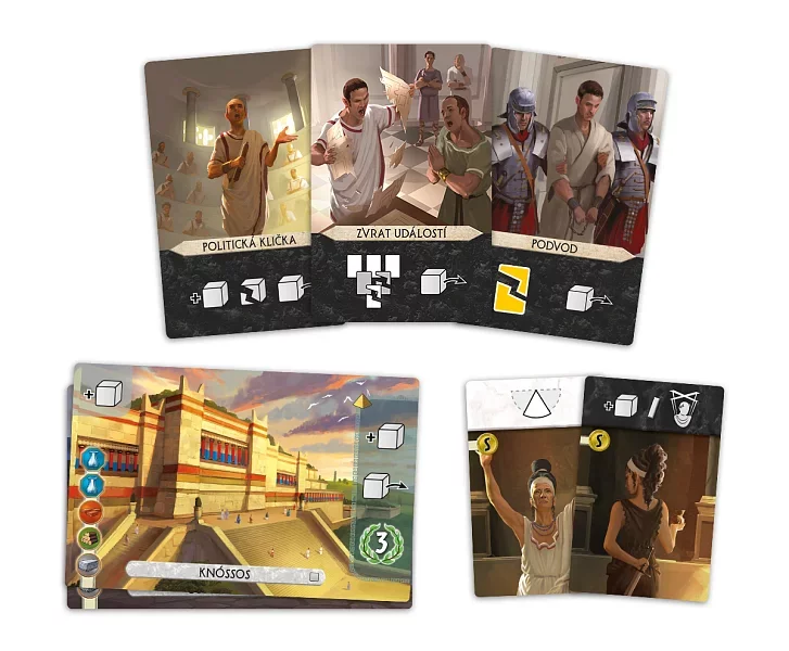 Toto rozšíření hry 7 divů světa: Duel přidává senátory a jejich vliv v senátu. Snažte se ovládat jeho komory a získávat výhody z dekretů, nebo povolejte spiklence, kteří dokáží celou situaci zvrátit.