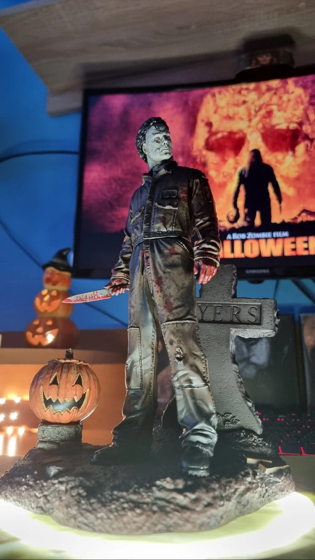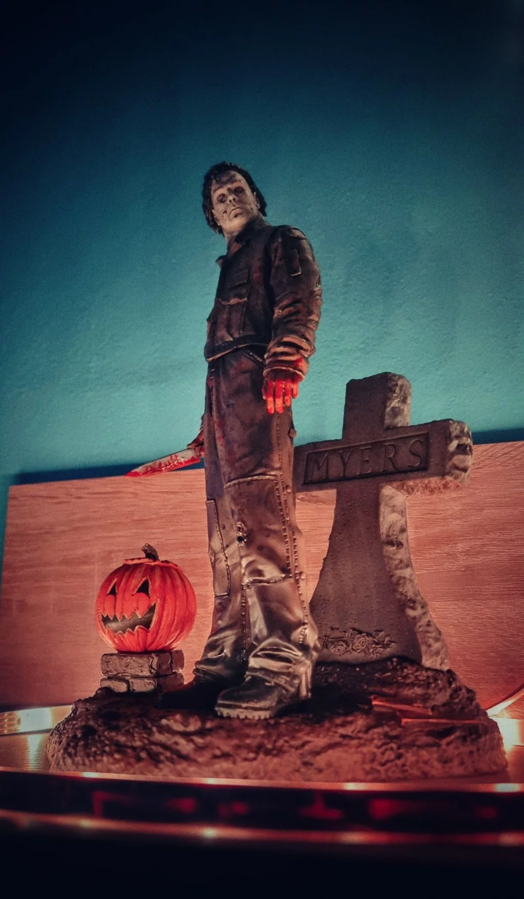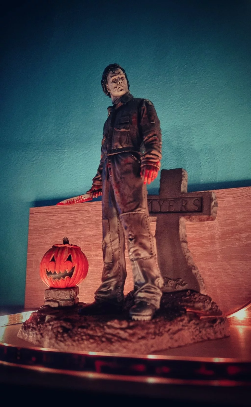 Díky 13dílkům si můžete postavit skvěle zpracovanou sošku legendárního zabijáka Michaela Myerse. Dílky se snadno připínají k sobě a vytvářejí úžasnou sošku, na které je Michael vedle náhrobku a dýně s nožem v ruce.