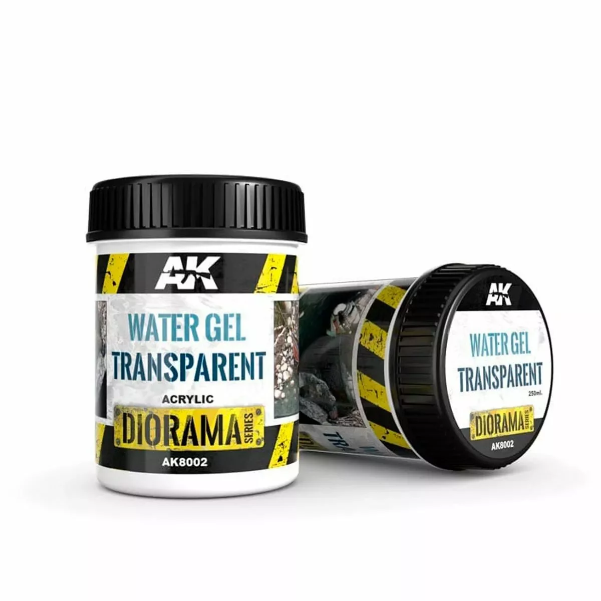 Akrylový gel speciálně vyvinutý pro extrémně realistickou imitaci pohybující se mělké vody v dioramatech. Doba schnutí závisí na použitém množství, doporučujeme však 24 hodin. Dokonalé výsledky ve vrstvách od 0,1 do 3 mm. Lze jej ředit vodou nebo akrylovým ředidlem pro zlepšení jeho tekutosti, přípravek není toxický.