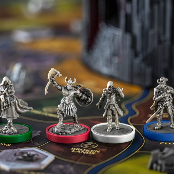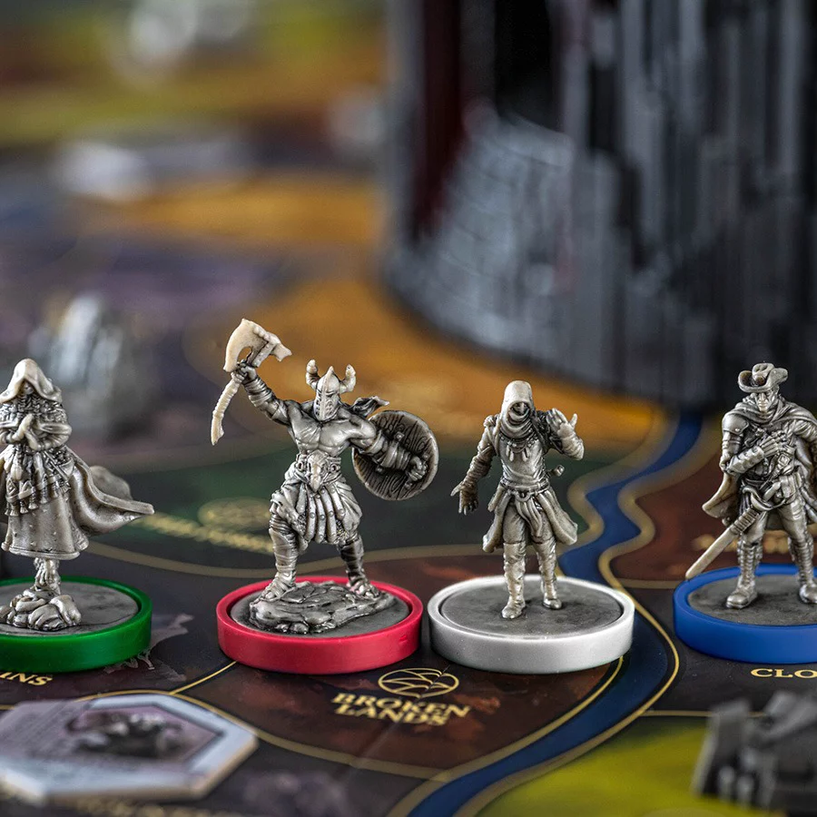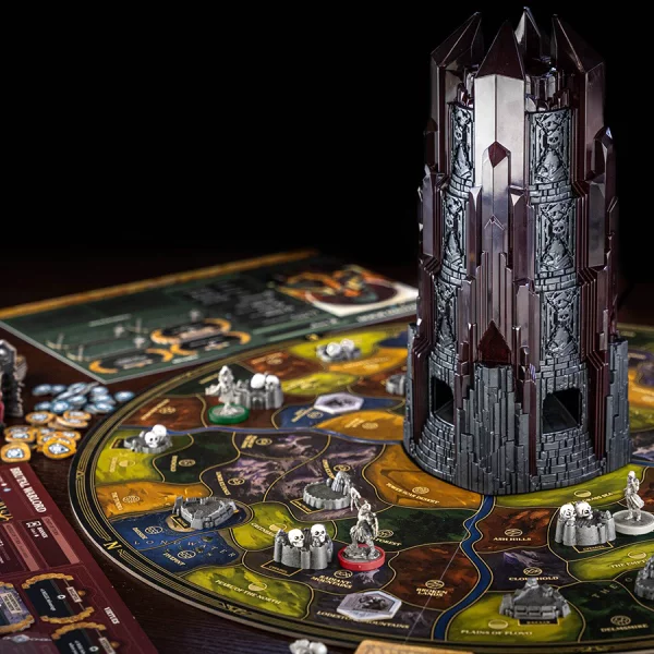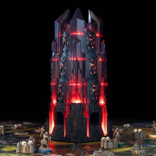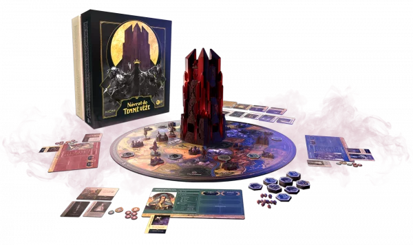 Dominantou kruhového herního plánu je interaktivní model věže, který ovládáte aplikací. Věž se bezdrátově spáruje s vaším chytrým zařízením a během partie bude do jednotlivých království chrlit zkázu v podobě lebek. Atmosféru navíc umocňují světla, zvuky i rotující poschodí samotné věže.