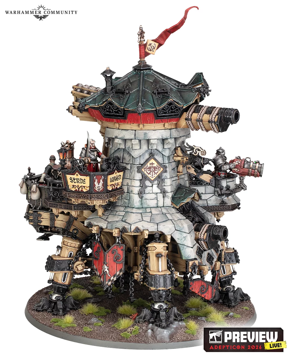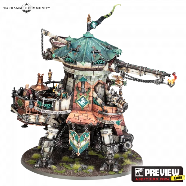 Cogforts – obří kráčející pevnosti z dílen Ironweld Arsenal. Tyto kolosy kombinují silnou palebnou podporu s transportem jednotek a výrazně mění dynamiku bojiště. Varianta Cannonade Cogfort nese Godbreaker cannon, zatímco Conqueror Cogfort nabízí Realmscorcher flame cannon a prostor pro pěchotu.
