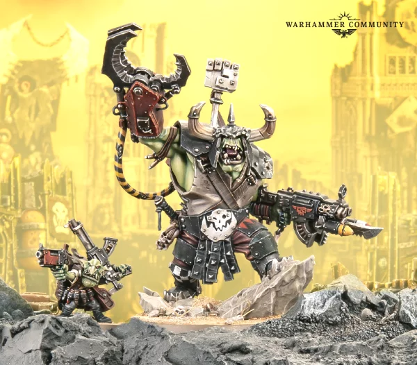 Na straně orků vidíme pochodovat dvounohou mašinérii s množstvím děl a Orkem, ovládajícím tento bizarní stroj v otevřeném kokpitu. Po straně pak vidíme Warbosse, kterého už ukázali na začátku března. Ve videu se také objeví ork chrlící z tlamy na mariňáky kdovíjaký hnus, dle designu jeho postavy se tak nejspíš můžeme těšit na miniaturu nového Weirdboye. Stejně jako u Ballistus Dreadnoughta na straně mariňáků se na konci videa ukážou celé síly Waaaghu orků, kde vidíme i některé aktuální jednotky z armády orků.