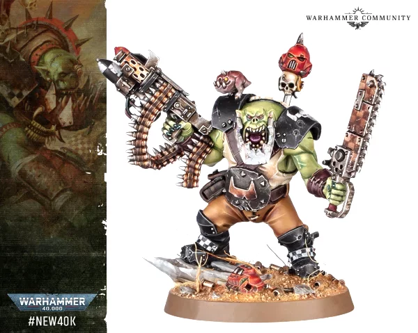 Na straně orků vidíme pochodovat dvounohou mašinérii s množstvím děl a Orkem, ovládajícím tento bizarní stroj v otevřeném kokpitu. Po straně pak vidíme Warbosse, kterého už ukázali na začátku března. Ve videu se také objeví ork chrlící z tlamy na mariňáky kdovíjaký hnus, dle designu jeho postavy se tak nejspíš můžeme těšit na miniaturu nového Weirdboye. Stejně jako u Ballistus Dreadnoughta na straně mariňáků se na konci videa ukážou celé síly Waaaghu orků, kde vidíme i některé aktuální jednotky z armády orků.