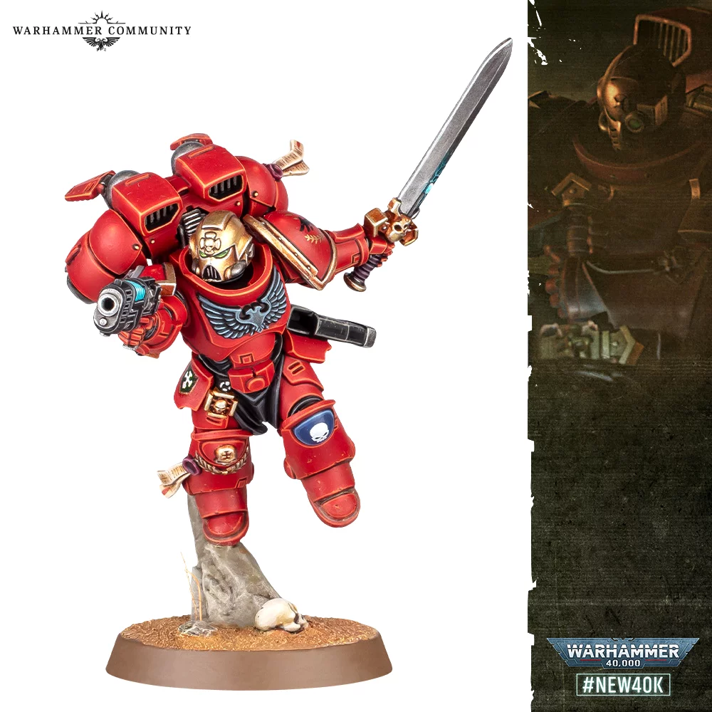 Jako třetí odhalená figurka na straně Astartes je dlouho očekávaný Chaplain with Jump Pack. Vybaven je klasickou kaplanskou zrbojí včetně lebkové helmy, crozius arcanum a absolvor bolt pistole. Je ideální na vedení nových Vanguard Veteránů, kterým přídává +1 k jejich wound rollu, podobně jako jeho kolegové na motorce a na nohou. Ač je tento konkrétní na krabici stylizované do chapteru Blood Angels, nemá na sobě přímo jejich skuplty, takže se bude hodit skvěle do kžadé mariňácké armády.