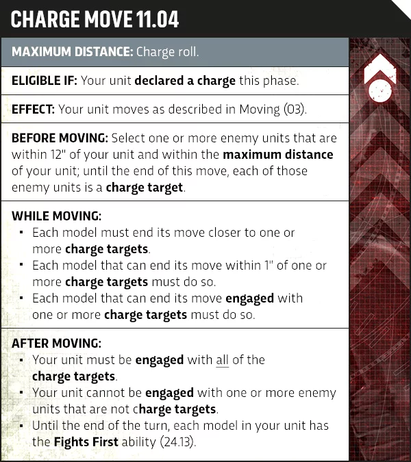 - Každý model, který může skončit pohyb engaged s jedním nebo více cílů charge tak musí udělat.