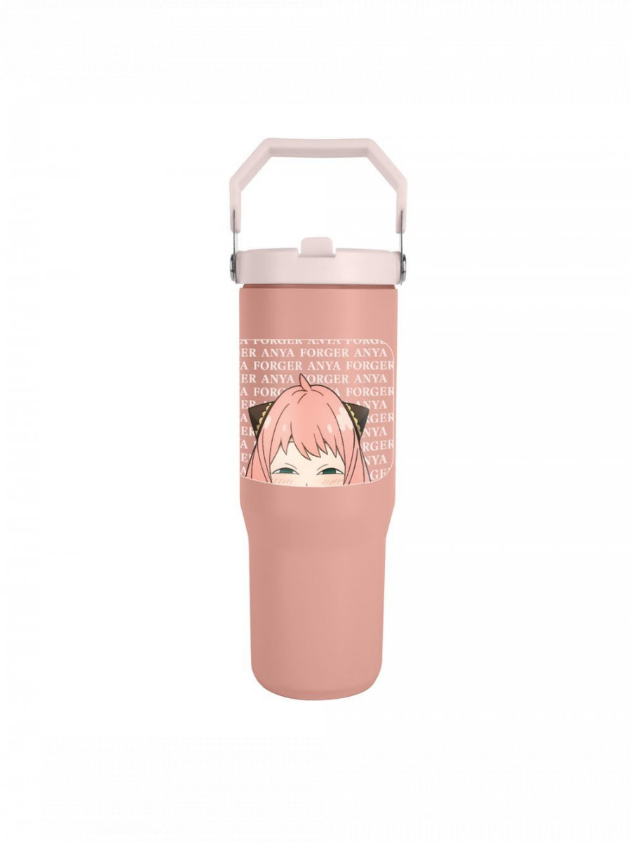 Stylový termo cestovní hrnek Spy x Family v elegantním růžovém provedení udrží váš nápoj déle teplý či studený – ideální parťák na cesty pro každého fanouška této série.
