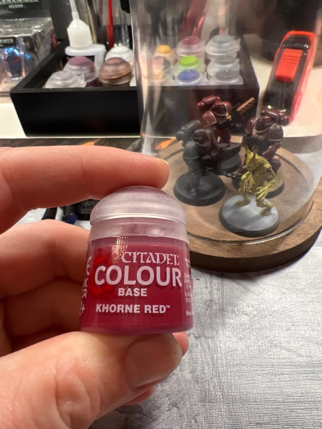 Tomáš K. (Xzone.cz)Ověřený nákupHodnoceno: 27.9.202455- Základová barva Citadel Khorne Red má lehce narůžovělý "tělový" nádech. Tato barva bude sloužit dobře jako podklad pro stínování miniatur daemonů.
