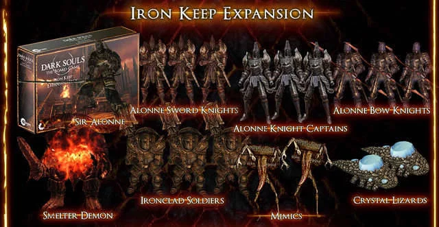 1 pravidla v angličtiněThe Iron Keep je mohutná pevnost, obklopená pomalu tekoucím roztaveným železem. Vaši hrdinové se v tomto rozšíření pro deskovou hru Dark Souls vydají právě do této pevnosti aby našli nové poklady. Na cestě se ale samozřejmě budou muset vypořádali s novými nepřáteli v čele s dvěma hlavními bossy a to sirem Alonnem a obrovským Smelter démonem.