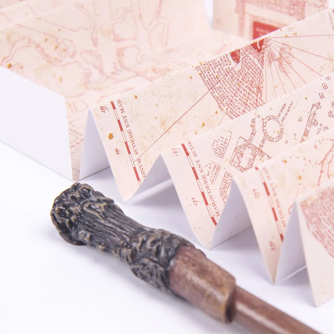 Pro všechny kouzelníky a čarodějky je tu krásná sada na psaní inspirovaná světem čar a kouzel Harry Pottera a školou v Bradavicích, konkrétně Pobertovým plánkem (Marauder's Map). V krásném dárkovém balení nalezneme propisku ve tvaru hůlky, zápisník a samotný plánek!