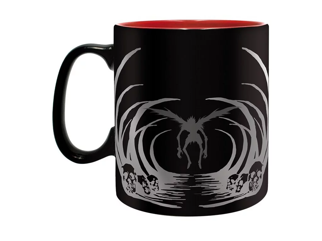 Člověk, jehož jméno je napsáno do zápisníku smrti, zemře. Populární manga Death Note ožívá na tomto hrnku s obsahem 460ml. Hrnek kombinuje temně rudou barvu uvnitř s černou navenek.