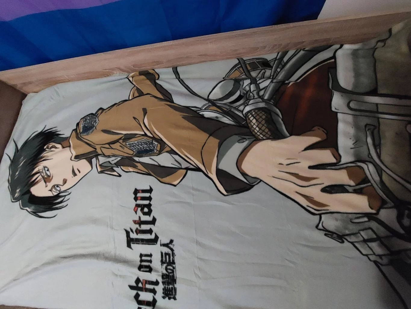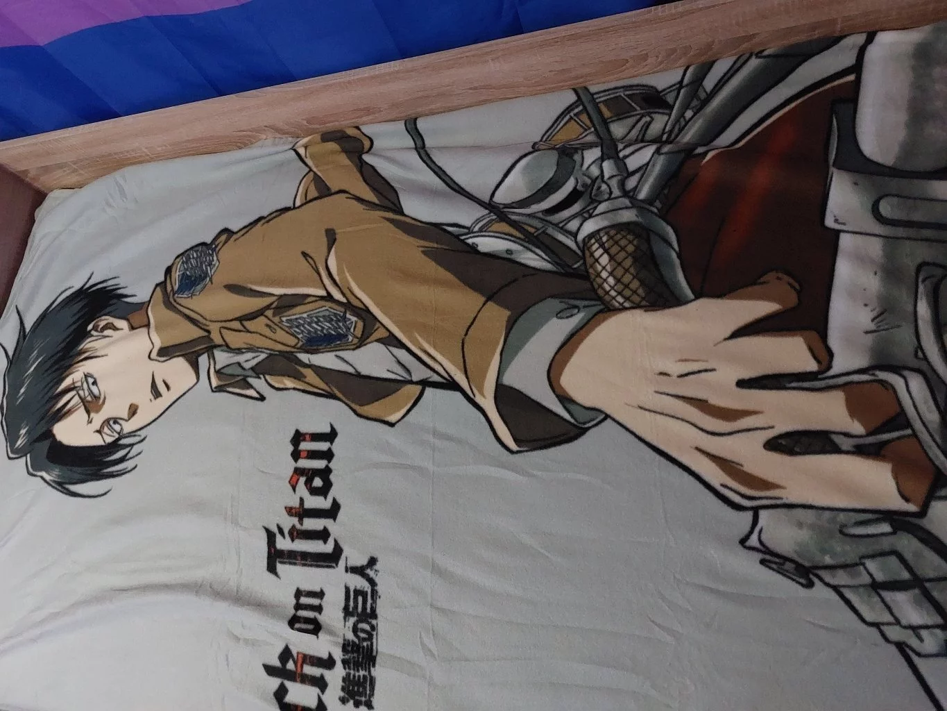 Deka je z příjemného a hebkého materiálu, s vyobrazením Levi ze série Shingeki no Kyojin v trochu větší velikosti než je on sám. Pod deku s rozměry 170x130 cm se dá krásně zalézt a dodat trochu více tepla v zimním období.