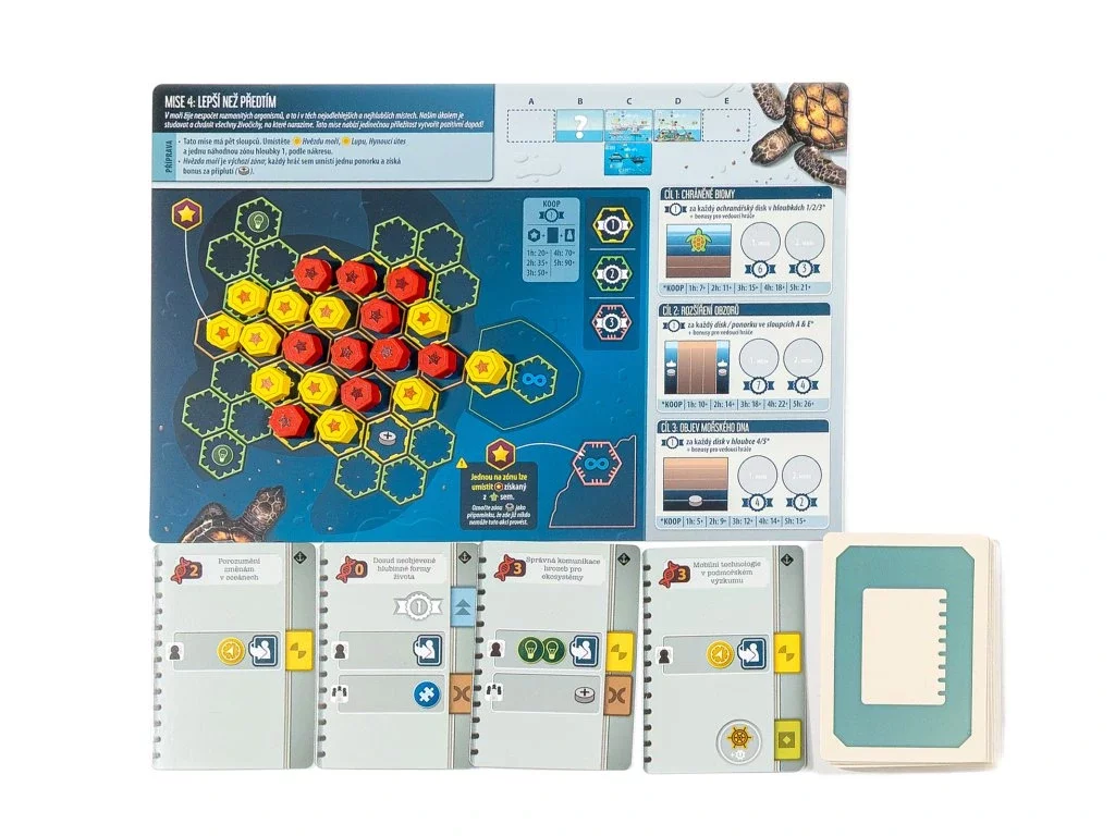 Vaším cílem ve hře ENDEAVOR: HLUBINY MOŘÍ je prozkoumávat oceány – od mělčin plných života až po neproniknutelné hlubiny. Toto pokračování hry Mořeplavci (Endeavor) se loučí s minulostí a vyplouvá vstříc světu úžasných podmořských objevů. Osvědčený herní systém zůstává nedotčený, ale autoři Carl de Visser a Jarratt Gray navíc vytvořili nové herní prostředí, ve kterém vás čekají rozmanité výzvy a možnosti.OBSAH BALENÍ