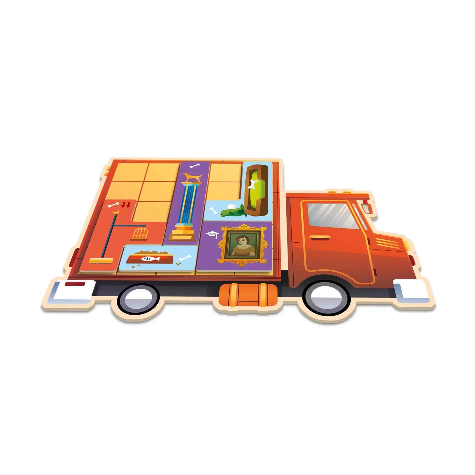 Hráči ve hře na desce domu získávají dílky nábytku, které skládají do svého náklaďáku a postupně věci odváží.