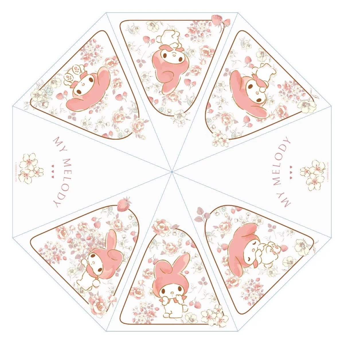 Roztomilý průhledný deštník s My Melody Vám zpříjemní každý propršený den. Jemné květinové motivy a pastelové barvy dodávají elegantní vzhled a díky průhlednému materiálu budete mít skvělý přehled o cestě před sebou. Ideální doplněk pro všechny milovníky Sanria, který rozzáří i to nejšedivější počasí.