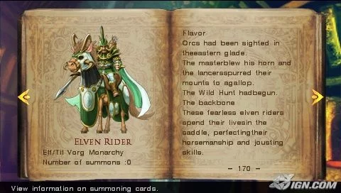 Původní fantasy karetní hra, která na velkou konzoli PS3 vyžadovala jak kameru tak fyzické karty je nyní celá vměstnána do PSP, bez nutnosti vlastnit jakékoliv další doplňky. Připravena je pro vás navíc poutavá kampaň pro jednoho hráče s unikátním karetním bojovým systémem přímo na obrazovce vašeho PSP.