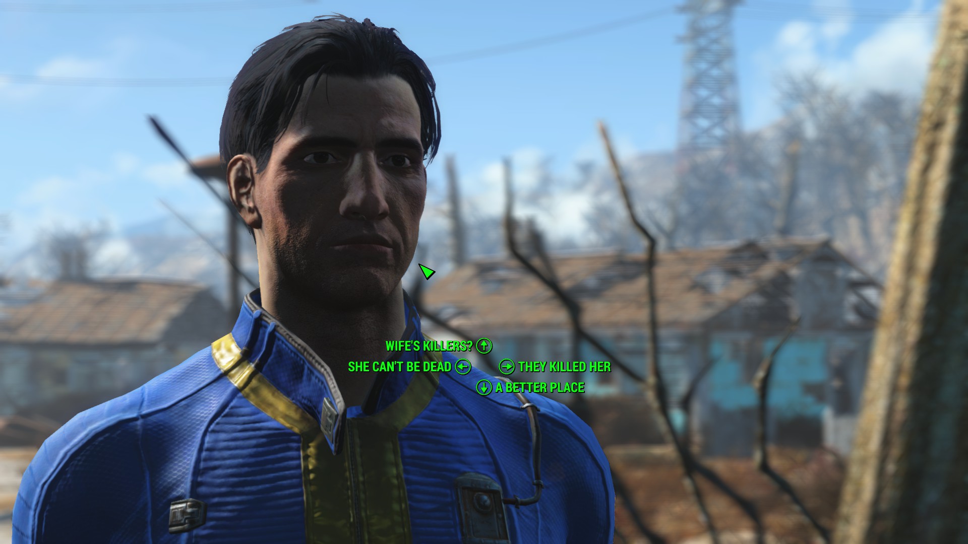 - - dialogy a namluvená postava. Do Fallout série nepatří a navíc je hrozně špatně zpracovaná. Předem ani nevíte, co postava řekne.