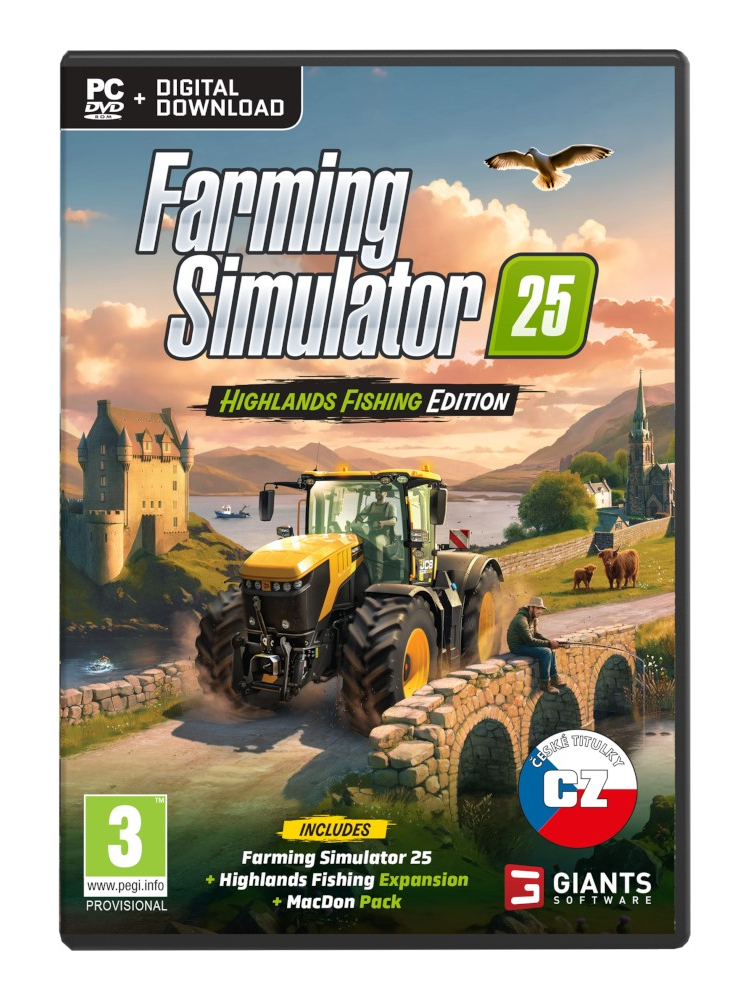 Farming Simulator 25: Highlands Fishing Edition obsahuje jak úspěšnou hlavní hru, tak rozšíření Highlands Fishing. Užijte si 26 plodin, 4 mapy, více než 400 strojů, přes 150 autentických značek a vodohospodářství nad rámec zemědělství, lesnictví a chovu zvířat.OBSAH EDICE