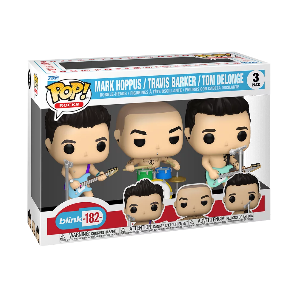 Společnost Funko se v sérii Rocks věnuje rockovým ikonám, tentokrát se představí californská pop-punková partička Blink 182 v té nejsilnější sestavě. Nechybí tedy Tom DeLonge, Travis Barker a Mark Hoppus ve zmenšené vinylové podobě. Figurky POP! vychází při příležitosti 30. výročí založení kapely.