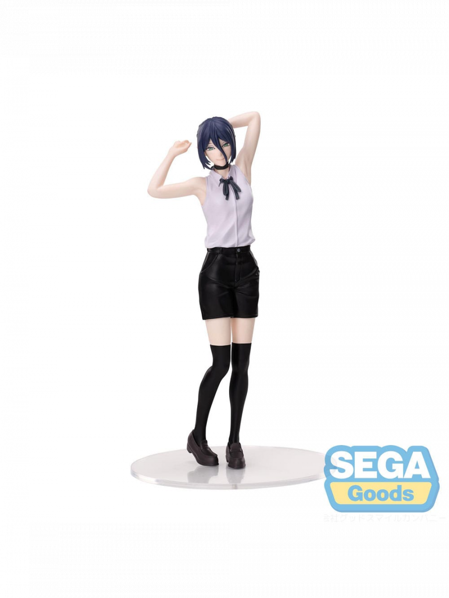 Reze z Chainsaw Man přichází jako elegantní figurka od Segy. V jednoduchém outfitu s šortkami a podkolenkami působí nevinně a klidně – ale fanoušci dobře vědí, že za jejím úsměvem se skrývá nebezpečí.Materiál: PVC