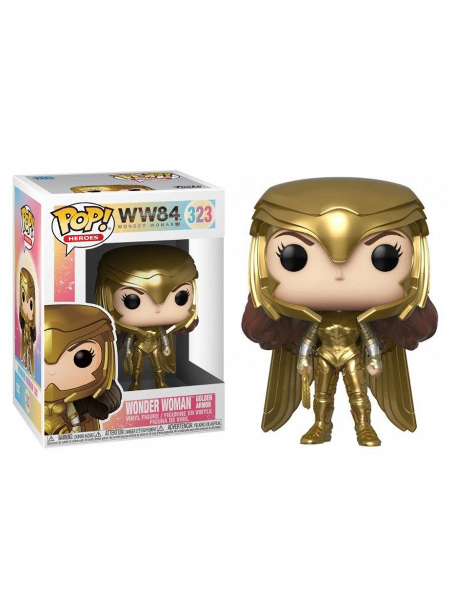 Funko POP! vinylová figurka k filmu Wonder Woman 1984 ztvárňující superhrdinku Wonder Woman odité ve zlaté zbroji a připravené utkat se záporáky Max Lordem a Cheetahem.