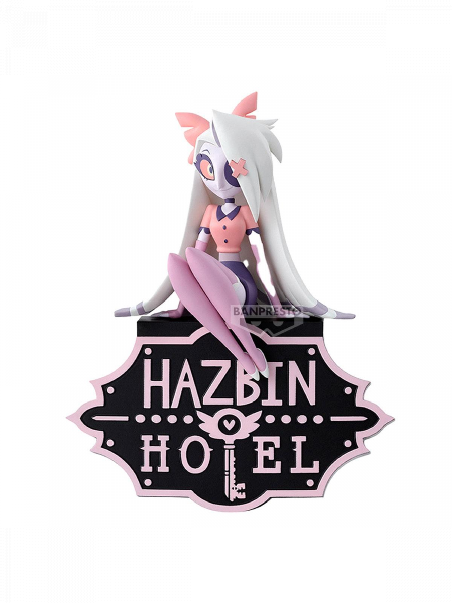 Vaggie z Hazbin Hotelu v elegantní póze na ikonickém podstavci s logem seriálu. Stylová figurka s jemnými detaily a pastelovou barevností, ideální doplněk do sbírky fanoušků Hazbin Hotelu.Velikost: cca 18 cm
