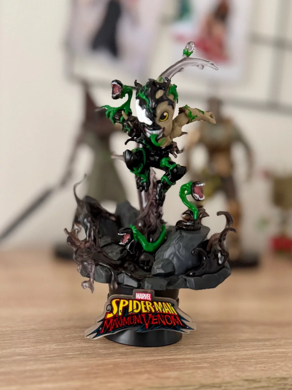 Společnost Beast Kingdom představuje novou sérii diorama figurek představující známé hrdiny komiksů od Marvelu infikované symbiontem Venoma pod názvem Maximum Venom Series. Limitovaná edice těchto figurek je pak kusově limitovaná na 4500 ks celosvětově a disponuje speciálním transparentním efektem a unikátním balením. Na této se představuje malého Groota (Little Groot) s Venomem v těle!