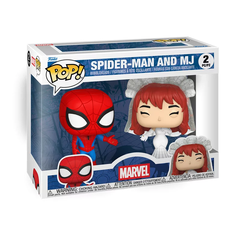 Spider-Man v klasickém kostýmu a MJ v elegantním svatebním outfitu tvoří perfektní kontrast, který zaujme na první pohled. Detailní zpracování a typický Funko styl dělají z tohoto 2-packu výrazný kousek do každé sbírky.
