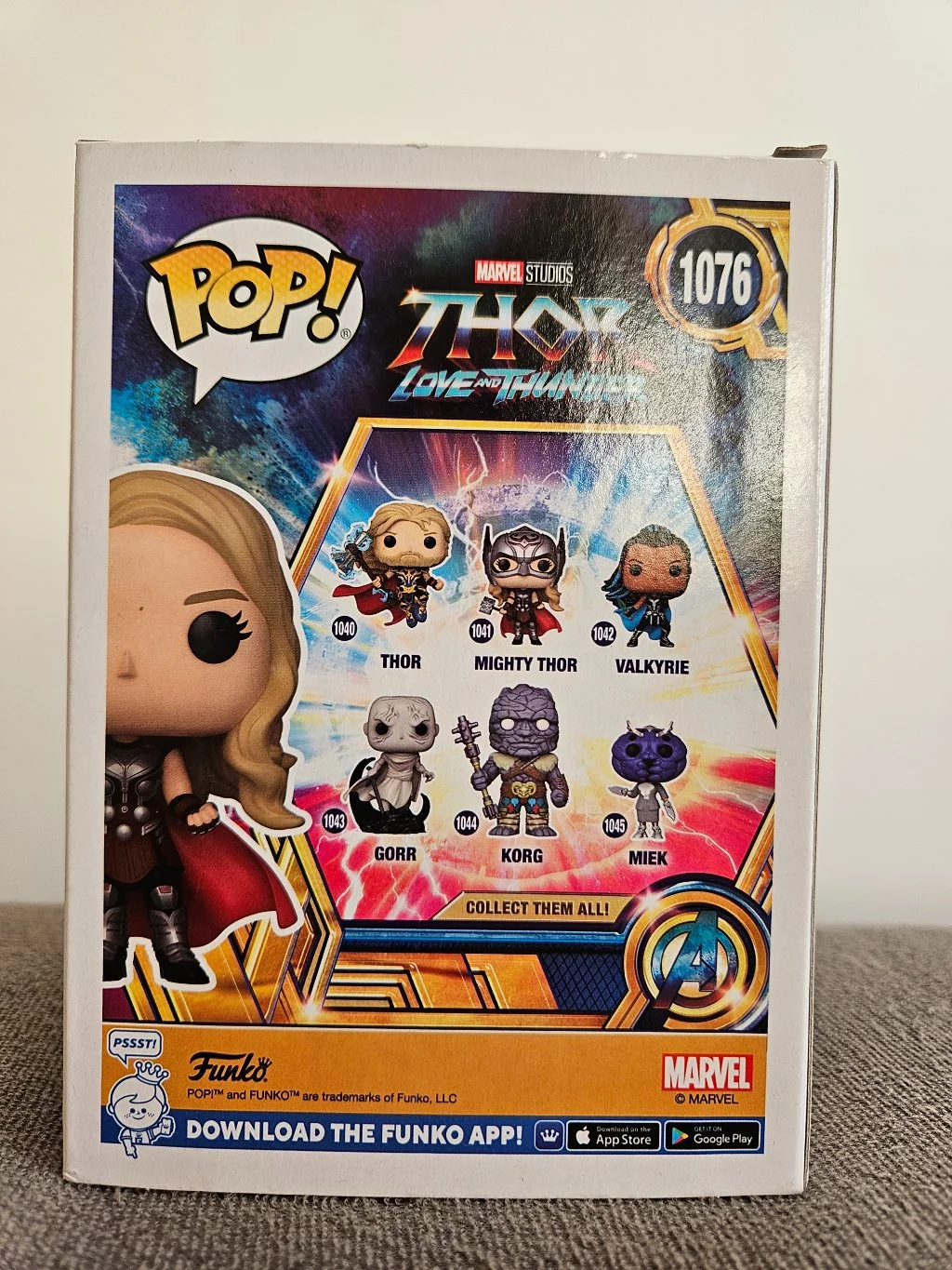 Další přírůstek do Marvel Cinematic Universe v podobě filmu Thor: Love and Thunder (Thor: Láska jako hrom) se dočkává svých elektrizujících vinylových figurek POP! od společnosti Funko! Ve filmu se objeví také Mighty Thor (Jane Foster), kterou hraje Natalie Portman! Speciální verze figurky.Velikost: cca 9 cm