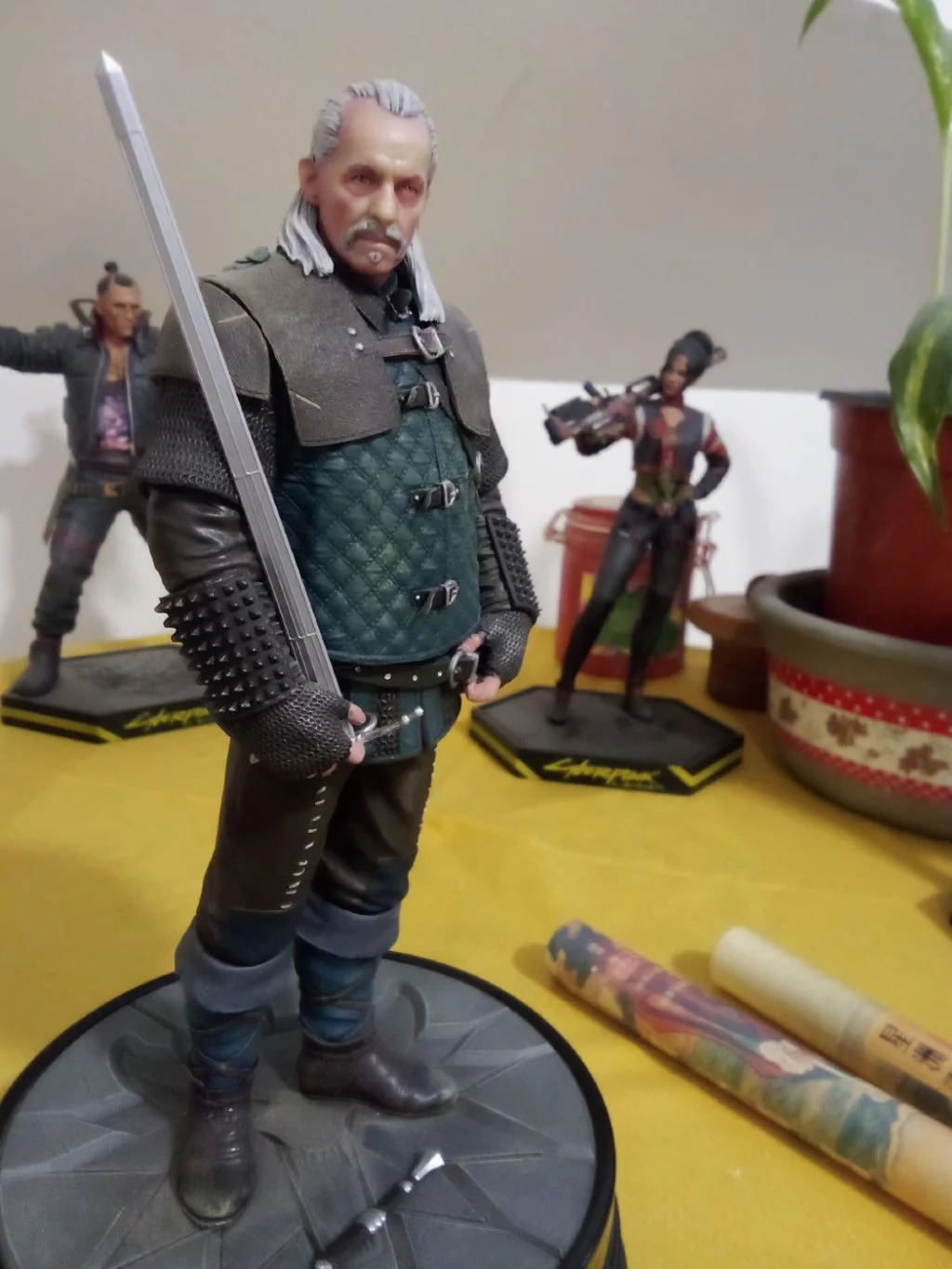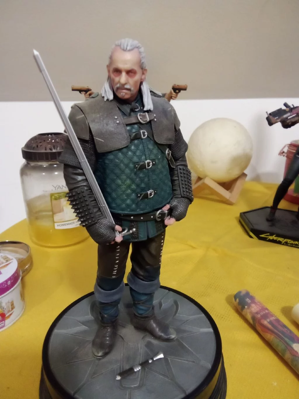 Figurky zaklínače jsou nádhera...detaily, velikost...vše paráda...jen bacha na meče, často upadávají...a Vesemir není výjimka...tady upadl jílec :D ale pro sběratele perfektní dárek