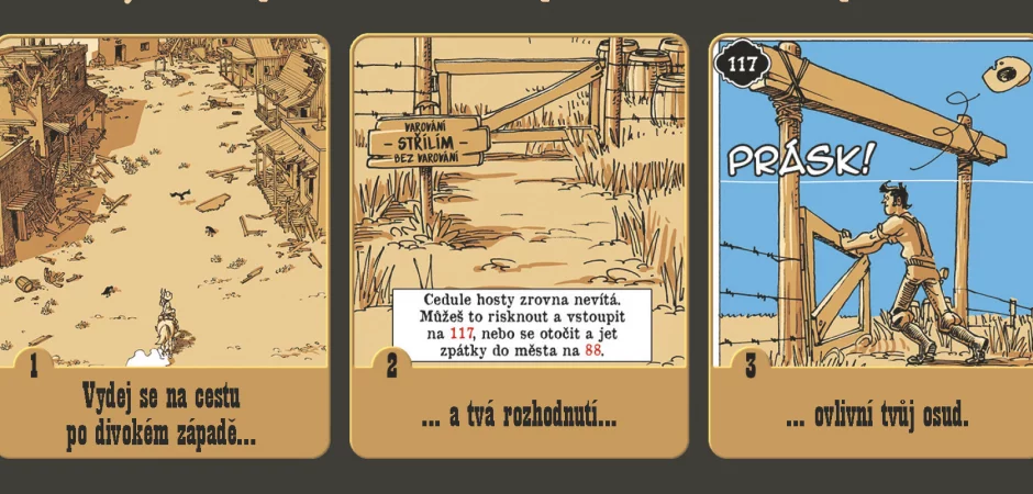 Zapadákov je další ze série gamebookových komiksů s názvem Komiks, v němž jsi hrdinou. Stejně jako v jiných dílech vaše rozhodnutí ovlivní to, kam bude směřovat celý příběh, v téhle knížce z Divokého západu je však k tomu všemu i nadstavba, ve které si budete stavět městečko. Zapadákov je prozatím nejhráčtějším dílem ceé série.