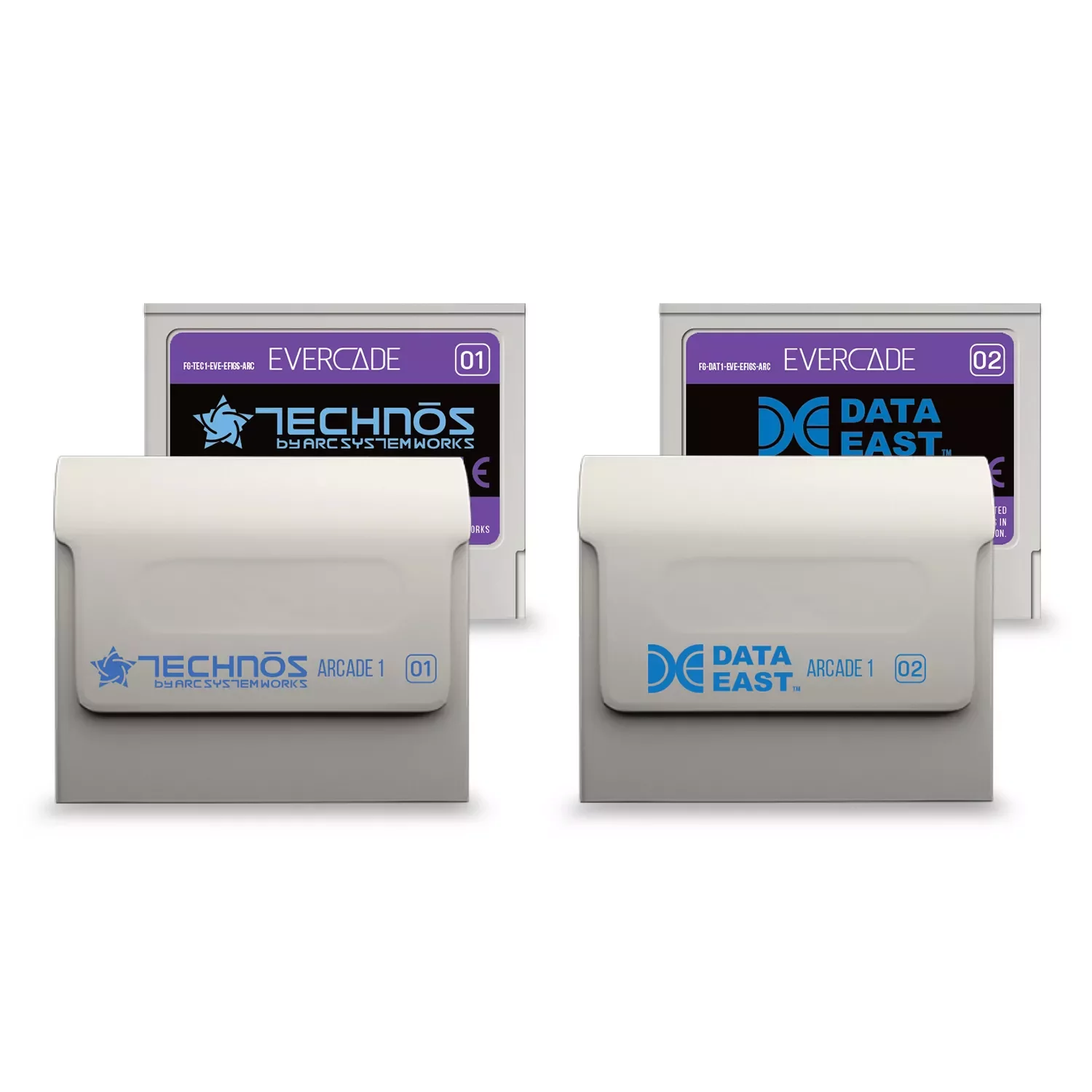 - Kompatibilní se všemi cartridgemi Evercade s výjimkou cartridgí Namco Museum Collection 1 a 2, které jsou určené exkluzivně pro původní handheldovou konzoli Evercade a novou handheldovou konzoli Evercade EXP