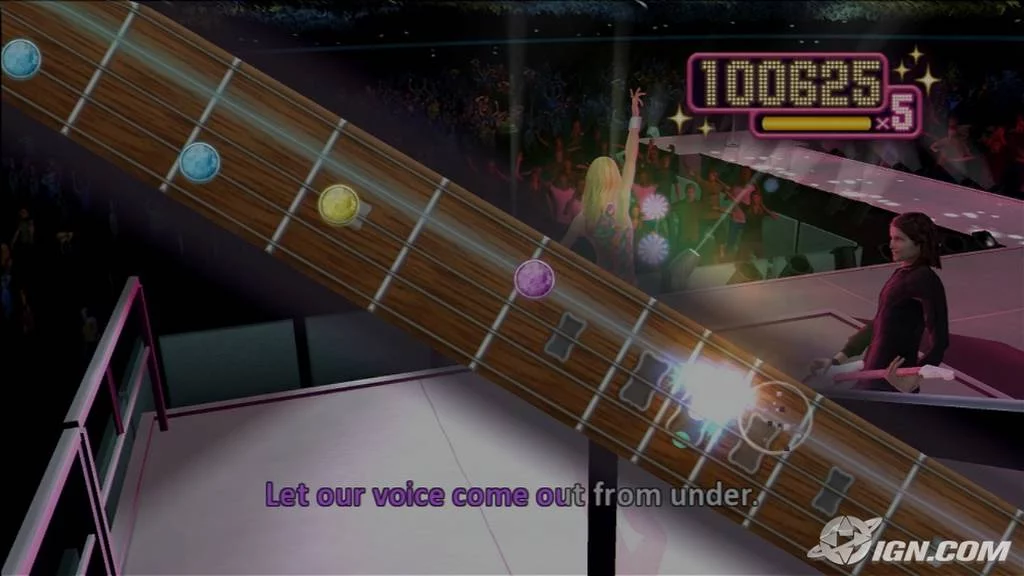 - V režimu „Vystoupení“ se oddejte typickým tanečním krokům a pohybům, jamujte se skupinou, hrajte na bubny, kytaru nebo klávesy.