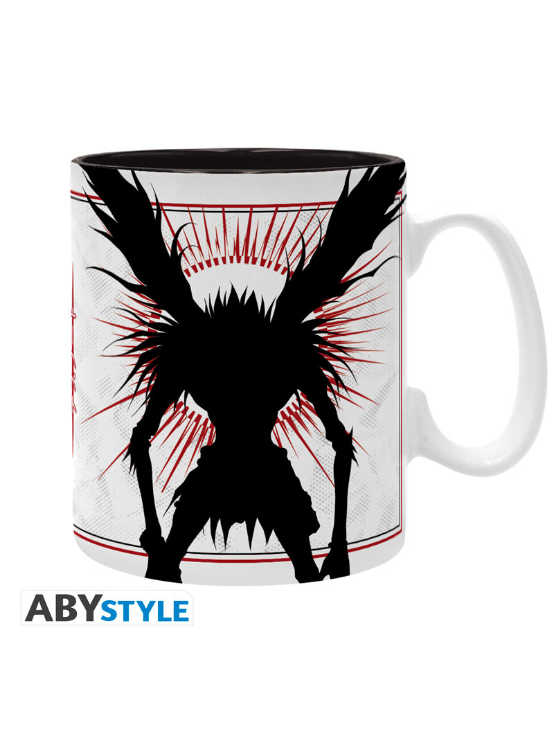 Vstupte do temného světa Death Note s tímto jedinečným hrnkem, který zachycuje ikonické siluety Lighta a Shinigamiho Ryuka. Stylový kontrast černé a červené na bílém pozadí dodává hrnku atmosféru, která osloví všechny fanoušky této legendární série.