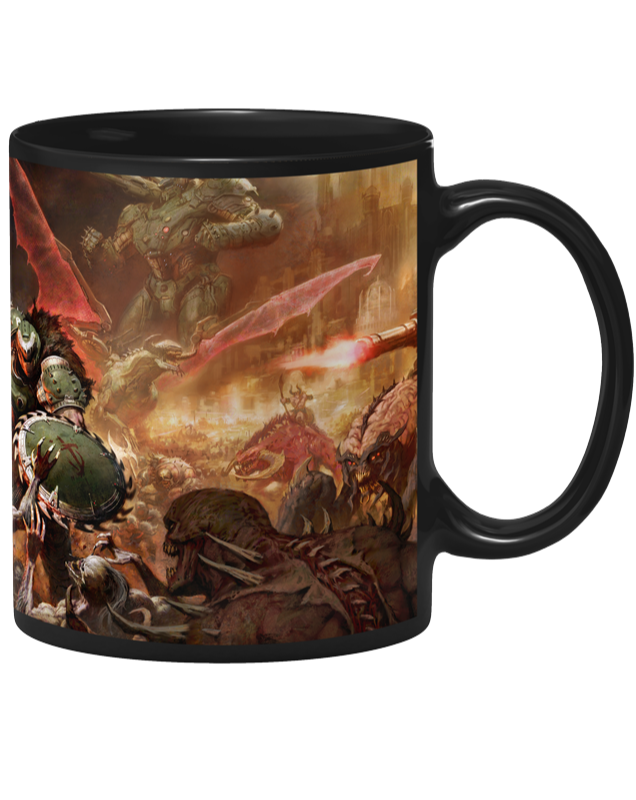 Klasický keramický hrnek s výrazným keyart motivem ze hry DOOM: The Dark Ages, černým uchem a černým vnitřkem. Perfektní doplněk pro každého fanouška série.Materiál: keramika