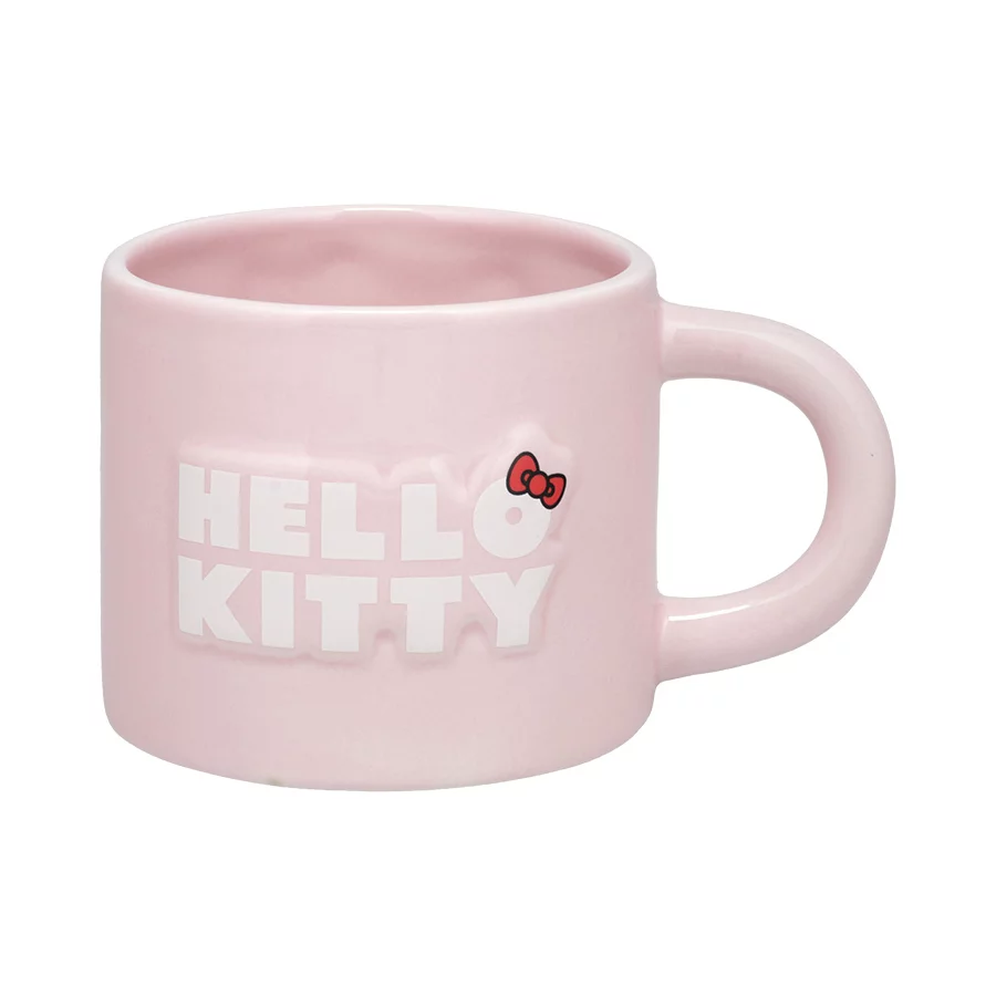 Roztomilý růžový keramický hrnek s reliéfním nápisem HELLO KITTY na jedné straně a ikonickým obličejem Hello Kitty s červenou mašličkou na straně druhé. Stylový a zároveň praktický doplněk, který potěší každého fanouška této oblíbené postavičky.Materiál: keramika