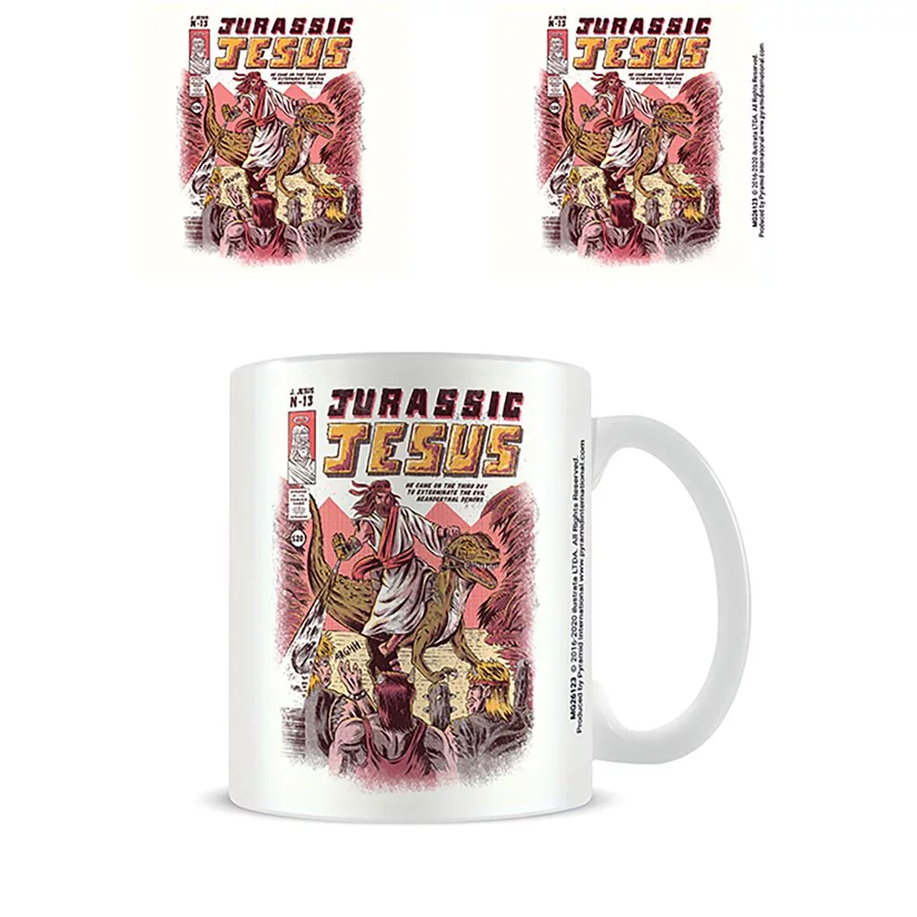 Hrnek Ilustrata – Jurassic Jesus je šílený, stylový a naprosto nezapomenutelný. Retro komiksový design s Ježíšem na raptoru pobaví, překvapí a zaručeně zaujme každého, kdo má smysl pro humor a slabost pro bizarní nápady.Objem: cca 320 ml