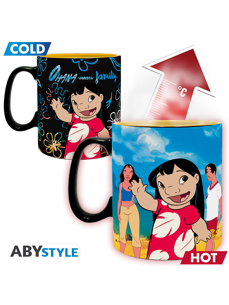 Velký měnící se hrnek s motivem Lilo & Stitch odhalí svůj kouzelný design po nalití horkého nápoje. Ideální pro fanoušky Disney, kteří si chtějí vychutnat každý doušek s trochou havajské pohody.
