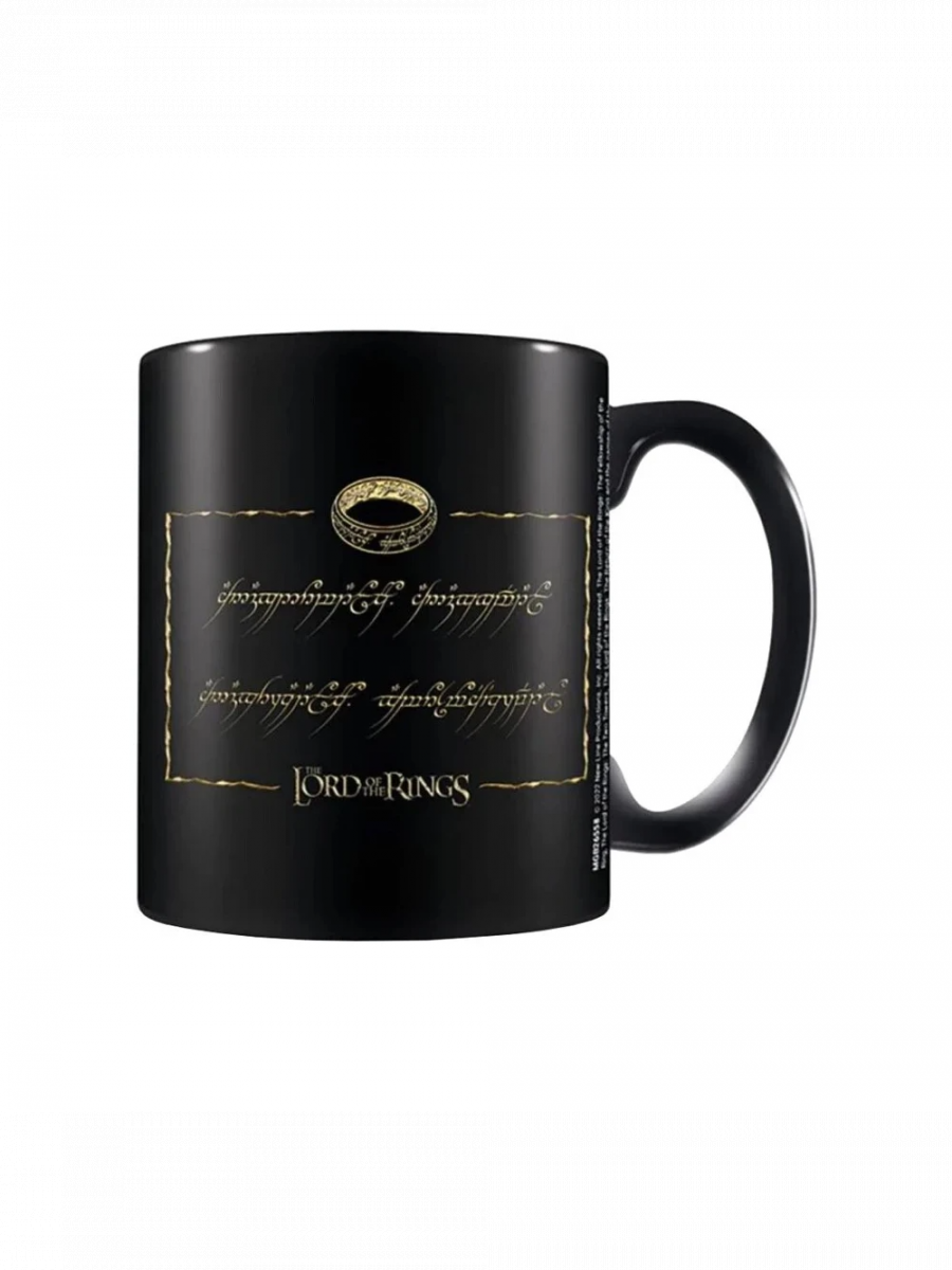 Temné provedení doplňuje ikonický nápis v elfštině a motiv Jednoho prstenu, díky čemuž působí hrnek tajemně a nadčasově. Každý doušek připomene sílu legendárního artefaktu.