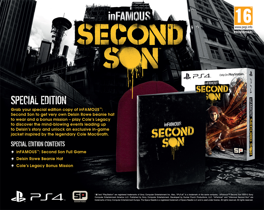 Nadlidé žijí ve společnosti, která se jich bojí. Department of Unified Protection (Agentura pro jednotnou bezpečnost) je nelítostně dopadá a uvězňuje. Když Delsin Rowe objeví své schopnosti, musí uprchnout a vyhledat další nadlidi. Jen tak totiž může zachránit své milované před utlačitelskou D.U.P., která po něm tvrdě jde. Jeho rozhodnutí ovlivní budoucnost všech v jeho okolí.Special Edition obsahuje navíc: čepice nového hrdiny Delsin Rowe, bonusové DLC do hry Legacy Bonus Mission. Všechny bonusy si můžete prohlédnout zde. Edice kusově omezena.