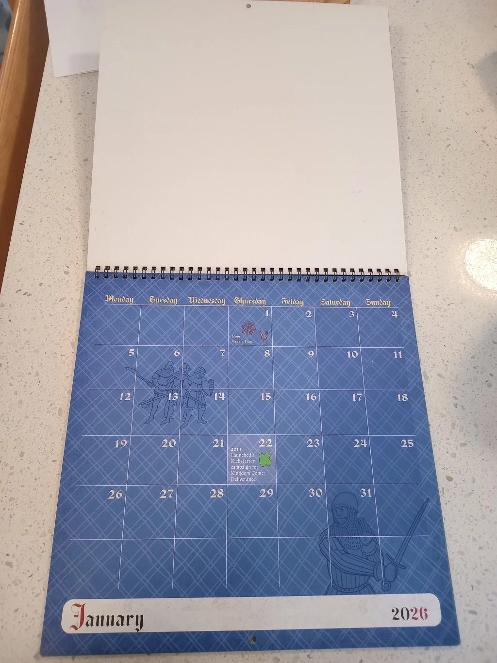 Kalendář obsahuje i významná data spojená se sérií Kingdom Come a je tak nejen praktickým, ale i sběratelským kouskem pro všechny fanoušky velkolepého díla Warhorse Studios.