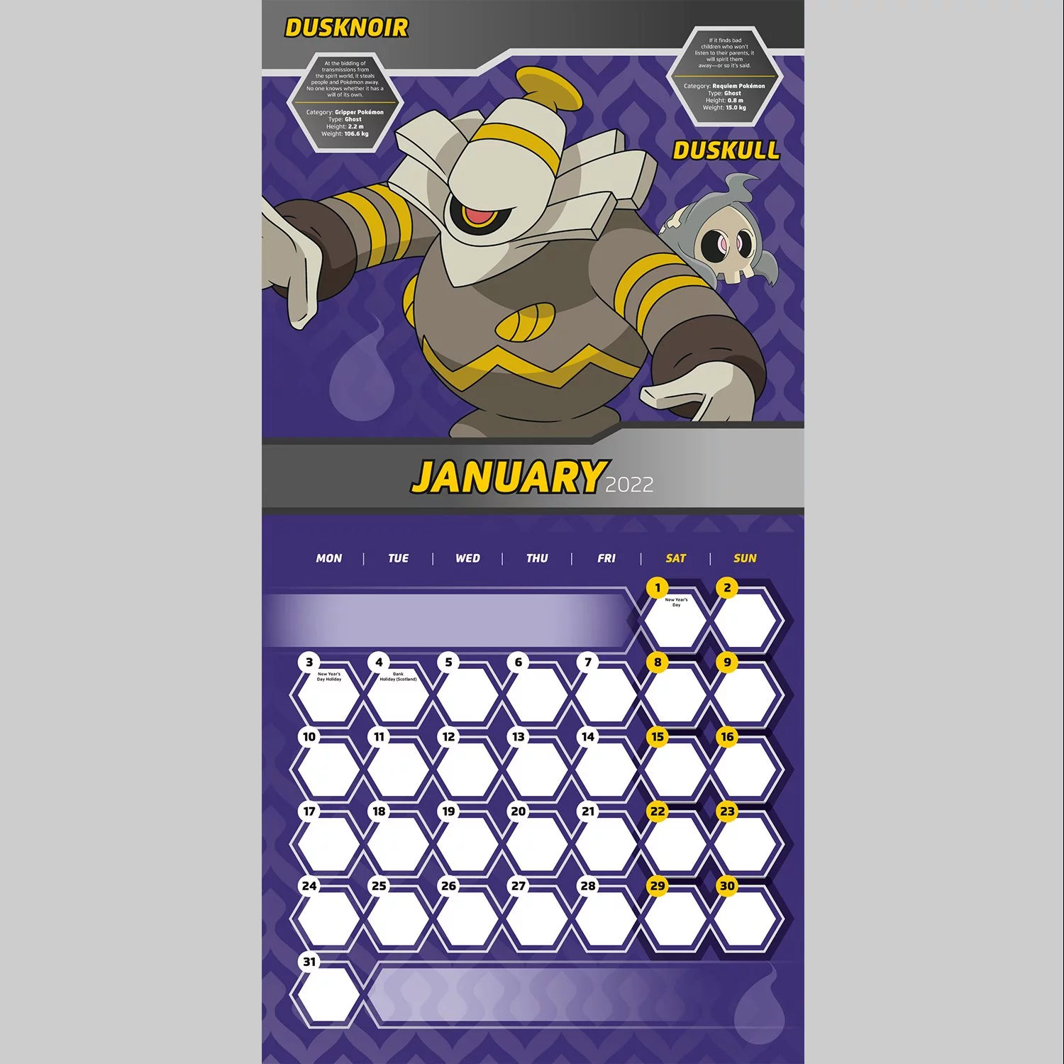 Nástěnný kalendář na motivy populární série her, anime a mangy Pokémon. Na každý měsíc v něm najdete jiný obrázek inspirovaný tímto světem.