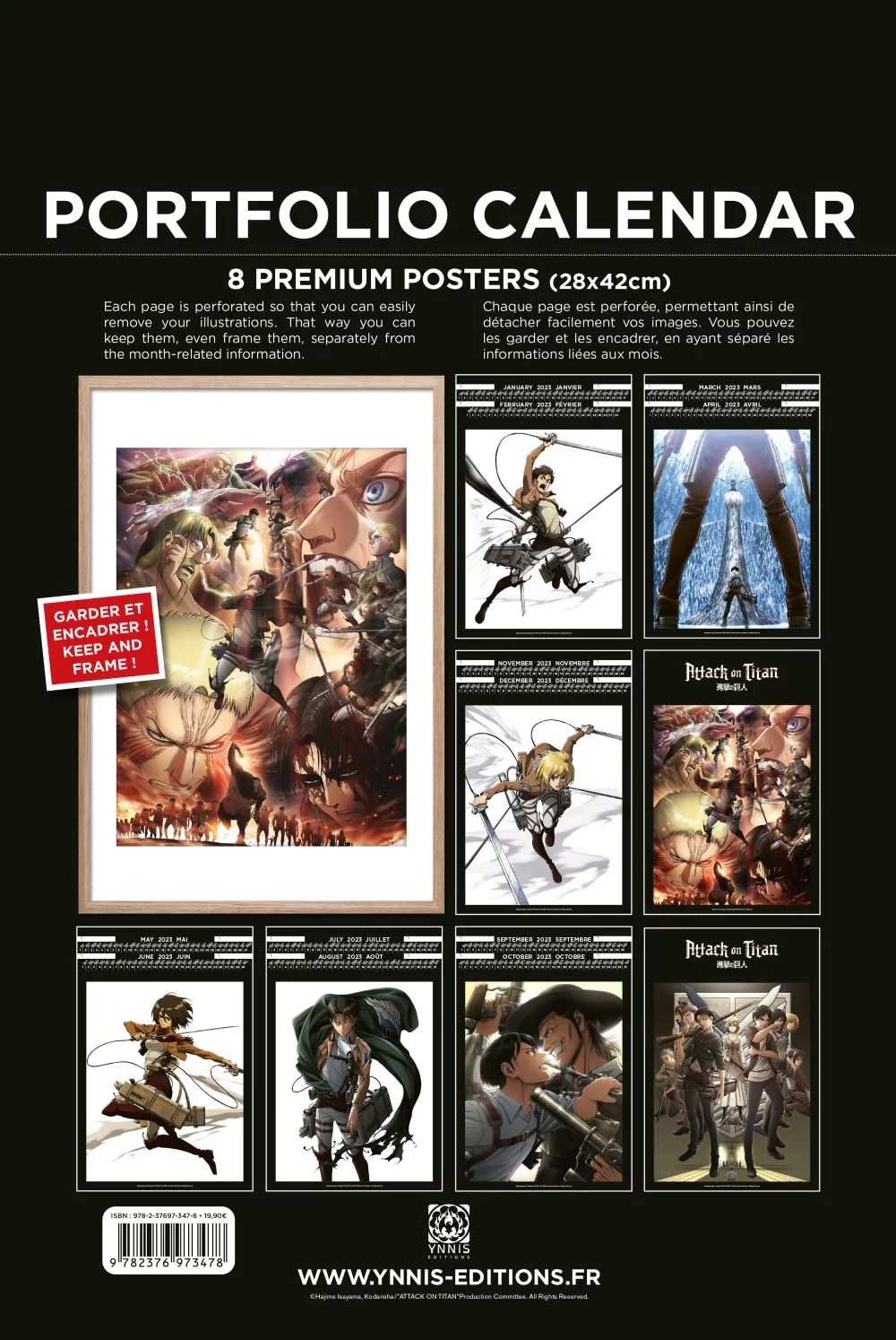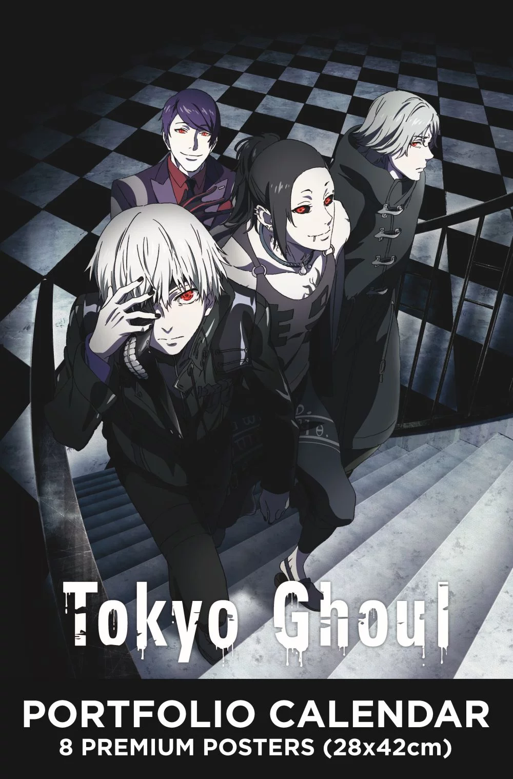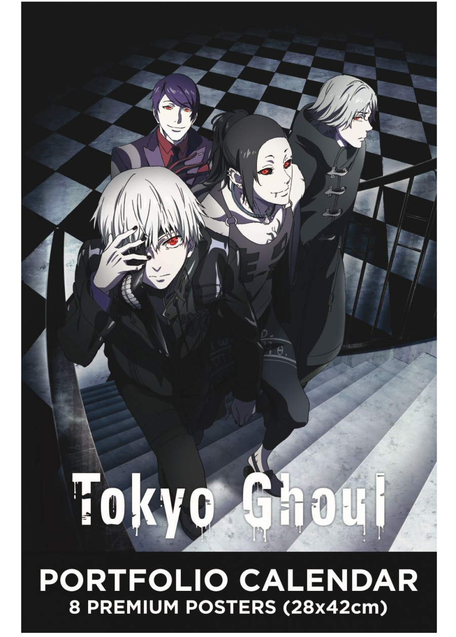 Nástěnný kalendář pro rok 2023 s celkem 8 ilustracemi s motivem oblíbené manga a anime série Tokyo Ghoul. Jednotlivé stránky mohou být po odtržení zarámovány jako plakáty. Názvy měsíců jsou v angličtině a francouzštině.