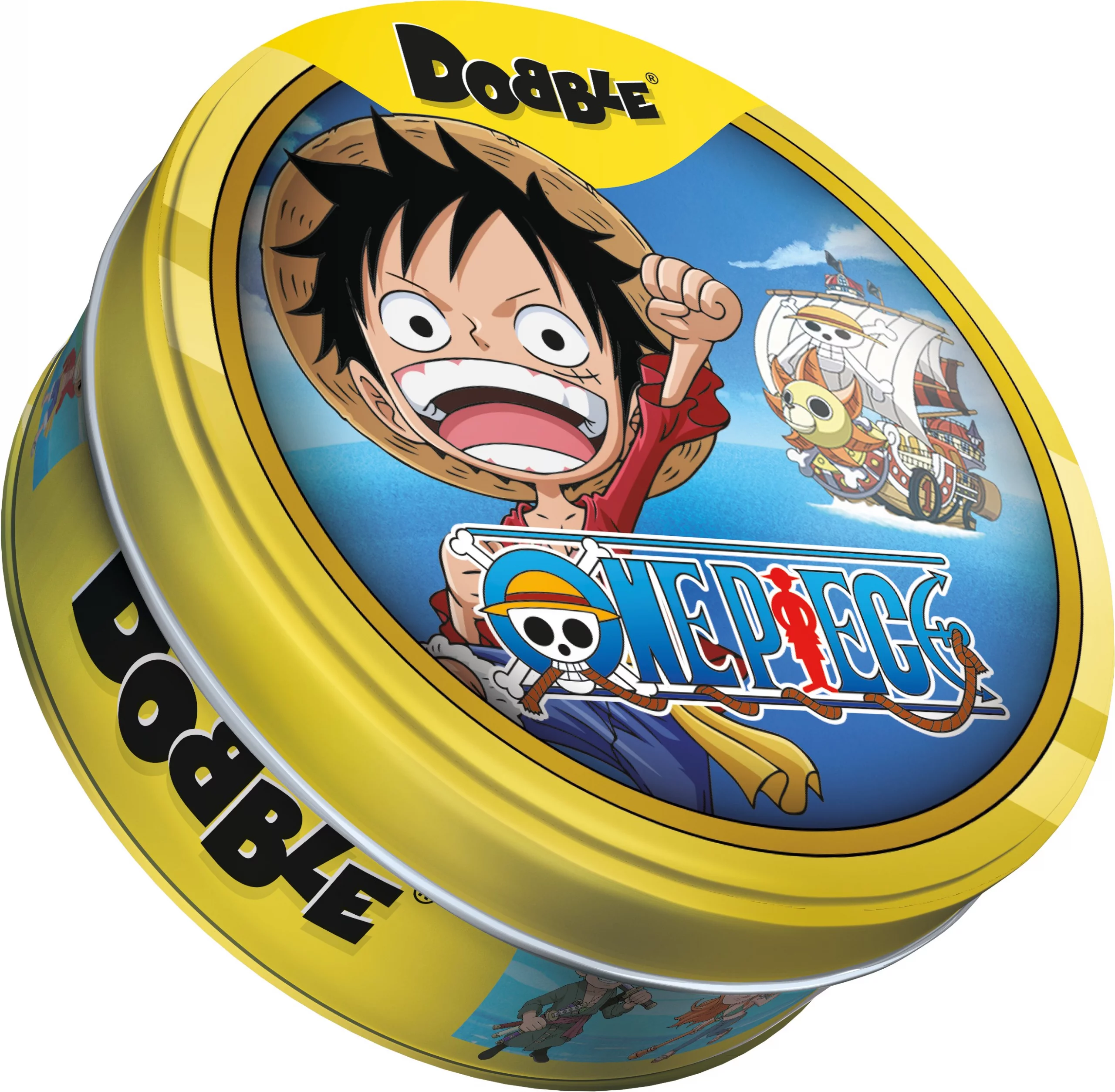 Jednoduchá, zábavná a rychlá: Dobble je hra, která procvičí vaši pozornost a postřeh! Buďte nejrychlejší a jako první pojmenujte jediný společný symbol mezi 2 kartami, čímž kartu získáte nebo se jí zbavíte! Luffy, Nami, Chopper, Shanks,