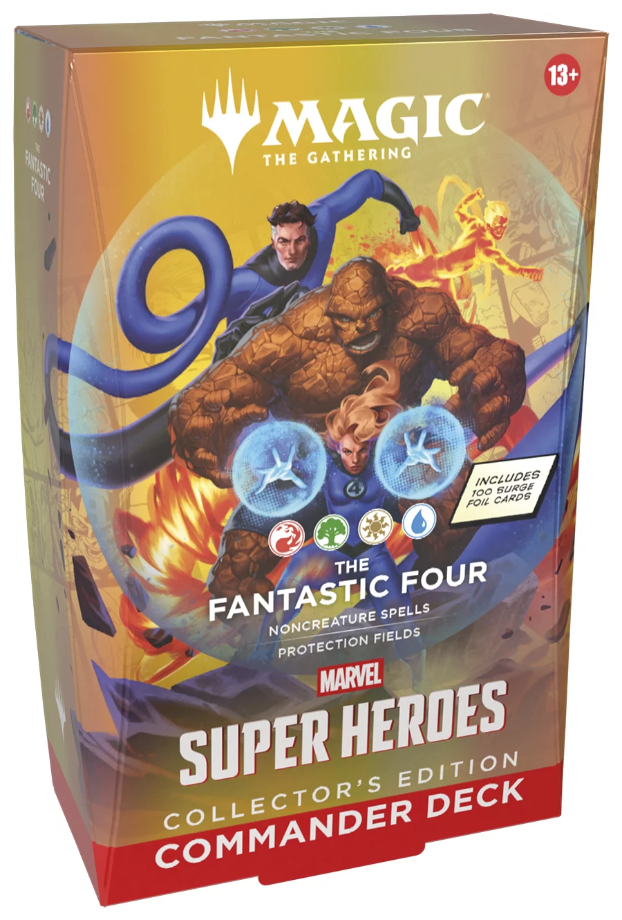 Commander balíčky jsou připravené ke hře ihned po vybalení a obsahují vše, co potřebujete pro nejpopulárnější multiplayerový formát Magicu. Magic: The Gathering | Marvel Super Heroes Commander Decks – Collector’s Edition přináší čtyři různé verze Commander balíčků a každý z nich obsahuje 100 surge foil karet.