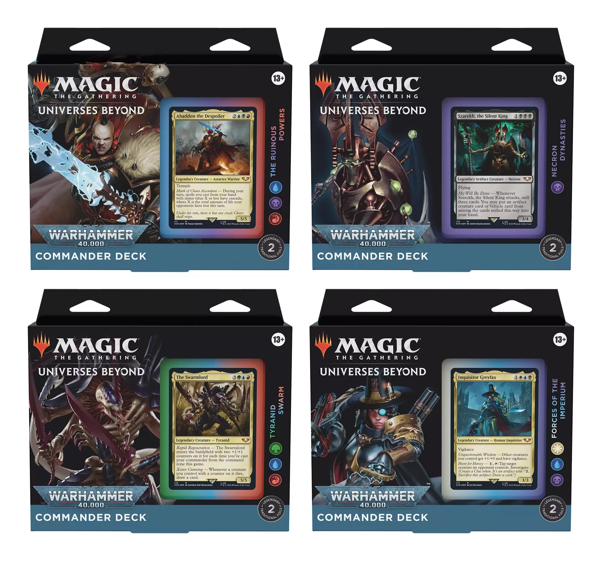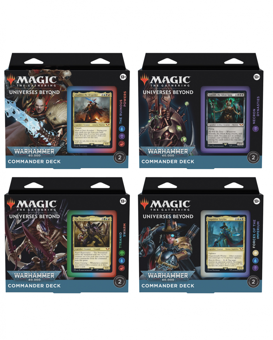 Vydejte se se svými přáteli prozkoumávat svět populární figurkové hry Warhammer 40,000 v novém vydání karetní hry Magic: The Gathering. Wizards of the Coast a Games Workshop spojili síly a přicházejí s novou verzí hry, která obsahuje frakce a strategie známé ze série Warhammer. Ideální příležitost pro nováčky prozkoumat tento fantastický svět!
