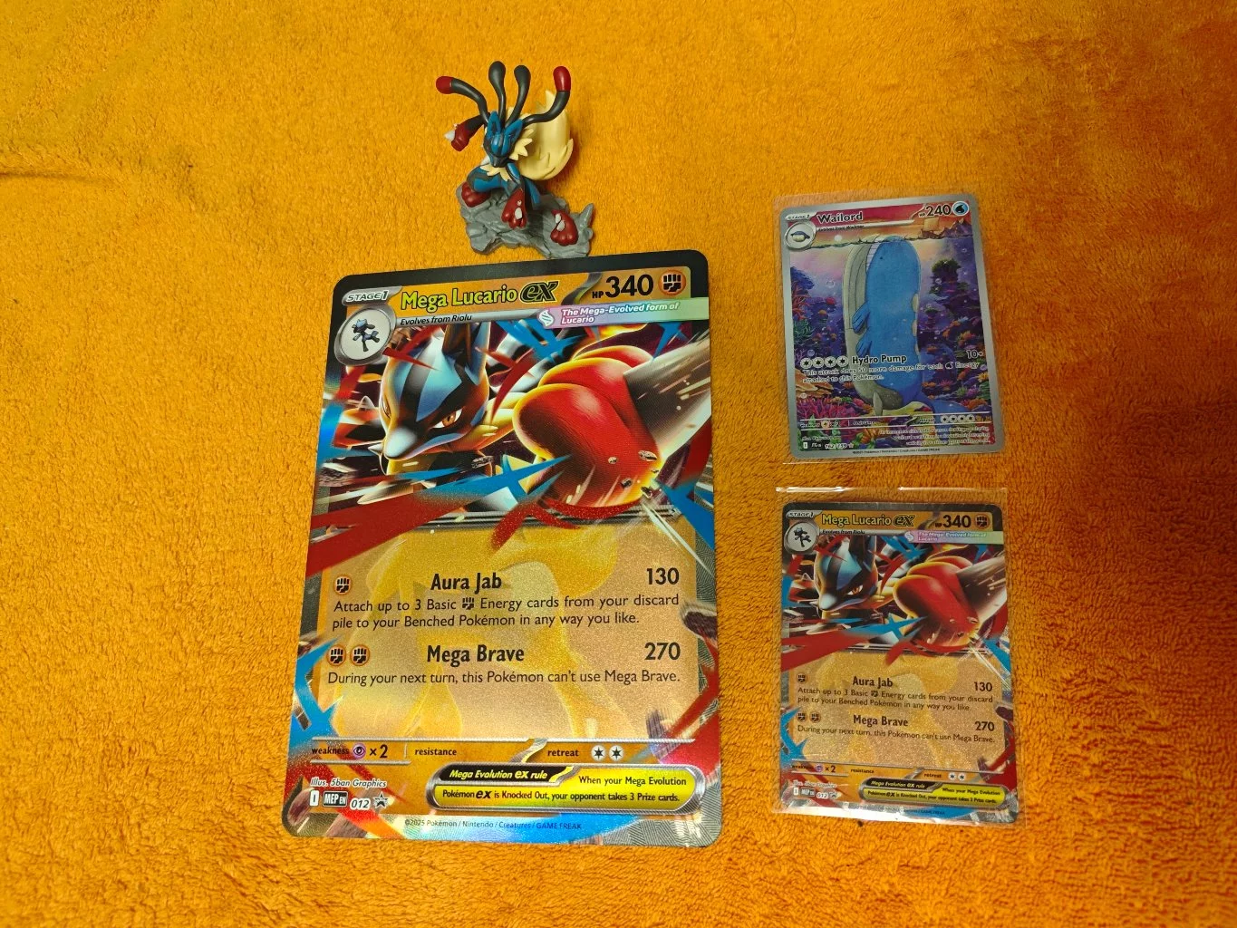 Moc pěkný boxík s promo kartou, velkou kartou a hezky zpracovanou figurkou Mega Lucaria. Je to o štěští, v mém případě jen jeden hit a to Wailord IR.