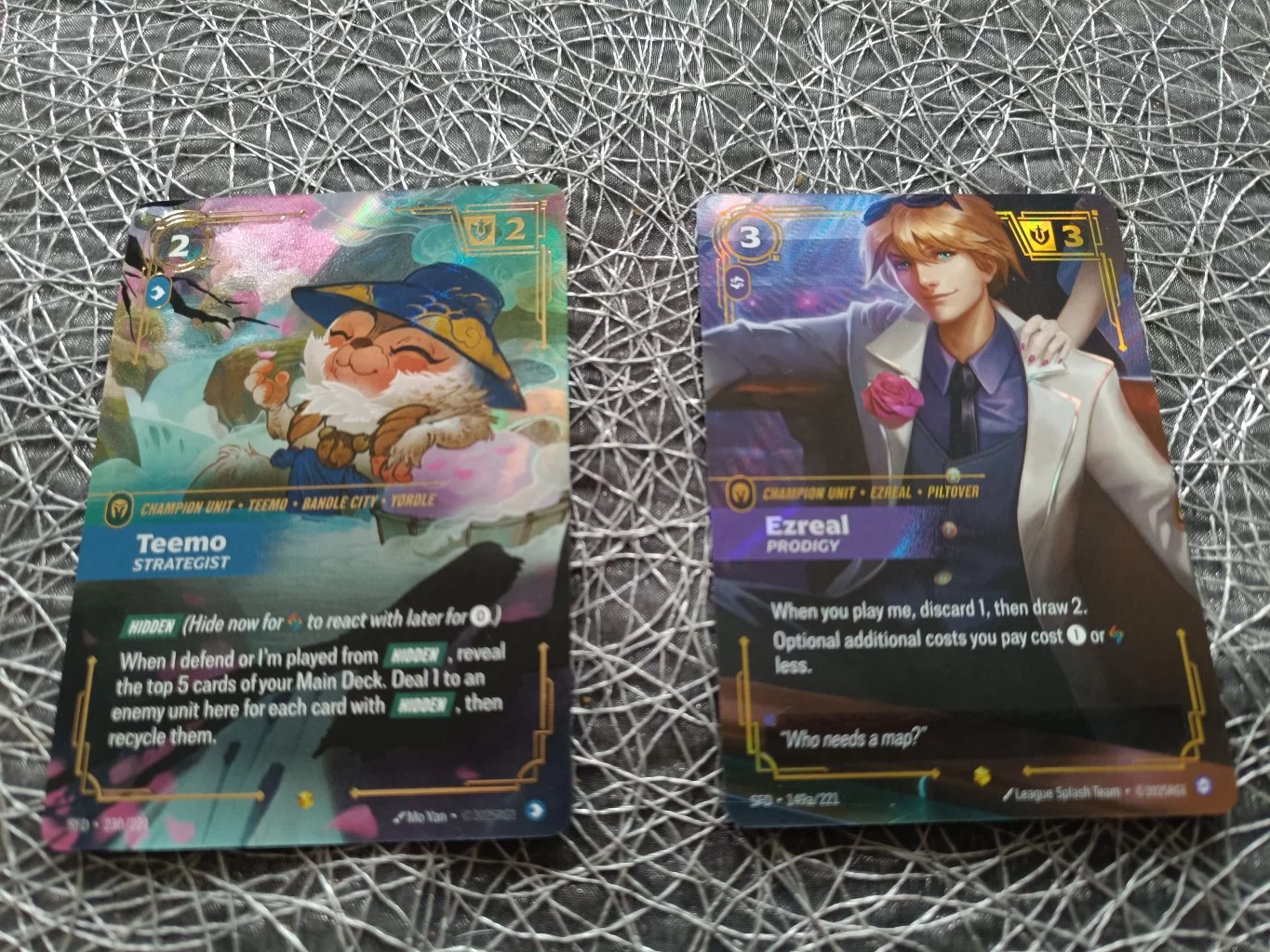 Booster ze hry Riftbound: League od Legends. Každý booster obsahuje 14 různých karet s ikonickými artworky světa League of Legends