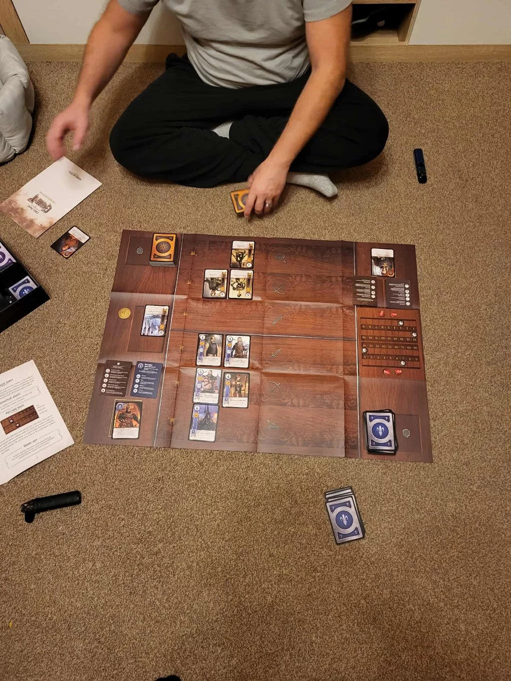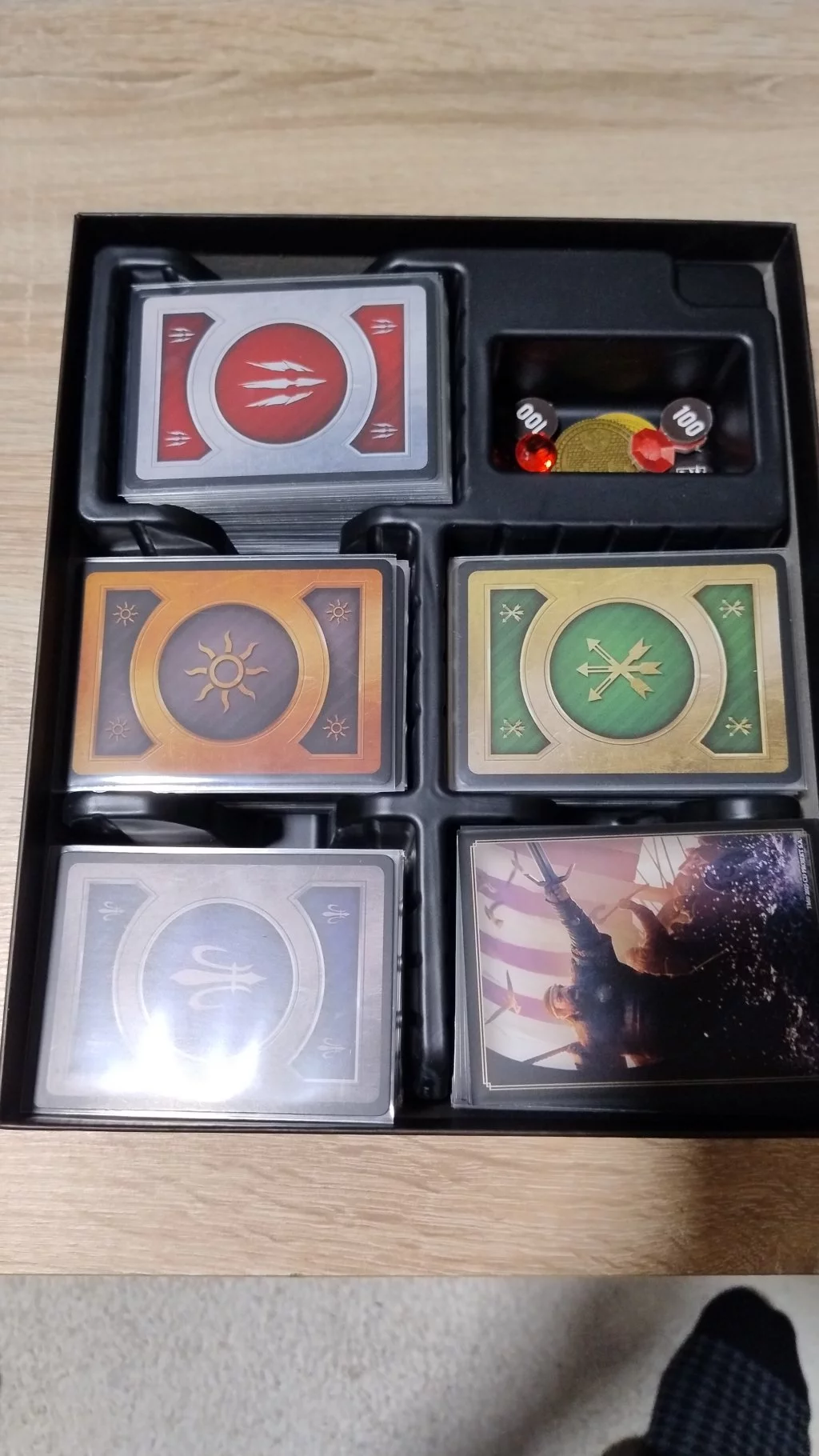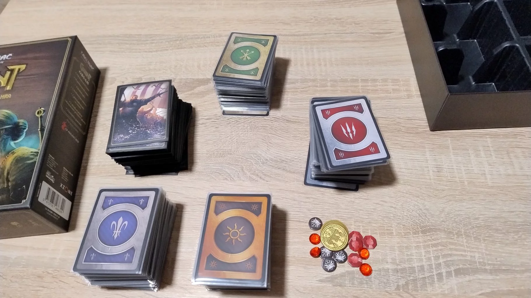 Koukal jsem na video od Xzone a tam říkali, že rozměr karet nebude tarot. Jenže na BGG je uvedeno, že rozměr je tarot, takže teď nevím, jaké ve skutečnosti budou – jestli 66×88 mm, nebo 61×112 mm.