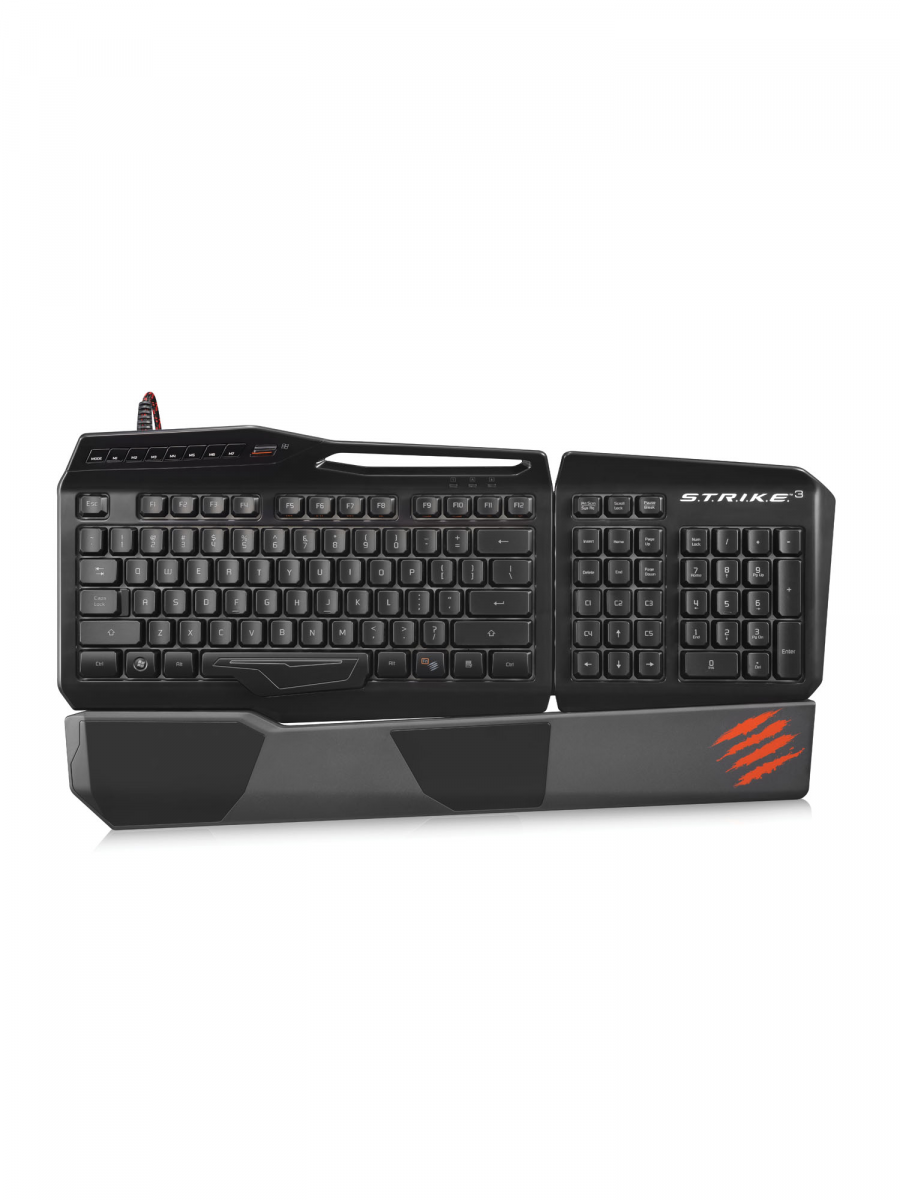 Windows XP, Vista[32bit], Vista[64bit], Win 7, Win 8Výjimečná klávesnice S.T.R.I.K.E. 3 od společnosti Mad Catz specializující se na herní periferie se zajímavým designem a velmi kvalitním provedením pro ty nejnáročnější hráče. Klávesnice na první pohled zaujme svým originálním designem, klávesami s nastavitelným podsvícením a dvanácti programovatelnými makro klávesami.