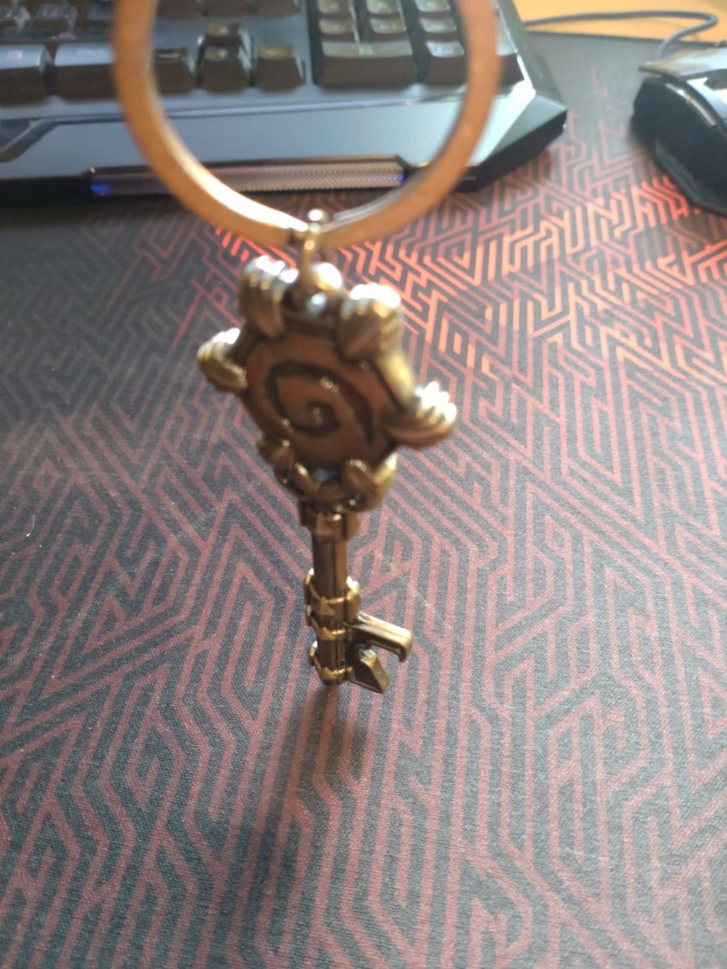 Povedená kovová klíčenka na motiv hry Hearthstone.